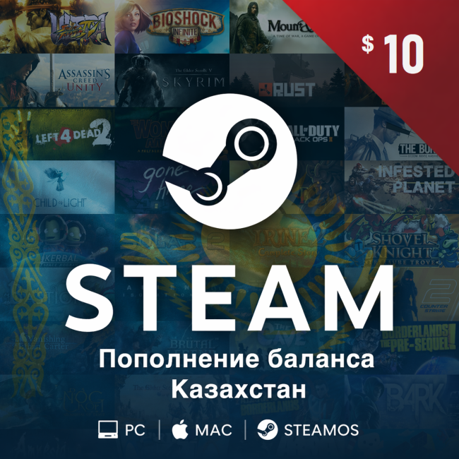 Предлагаем удобное и быстрое пополнение баланса казахстанских аккаунтов Steam. Услуга подойдет для пользователей, у которых регион аккаунта — Казахстан, и которые хотят без лишних сложностей оплатить игры, дополнения или внутриигровой контент.