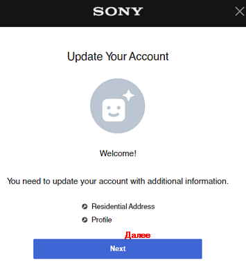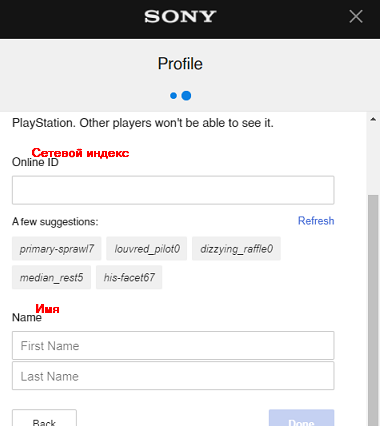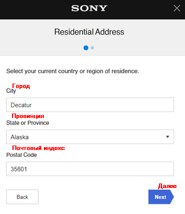 6. При вводе логина на сайте Sony, вас попросят ввести свой Никнейм и адрес.